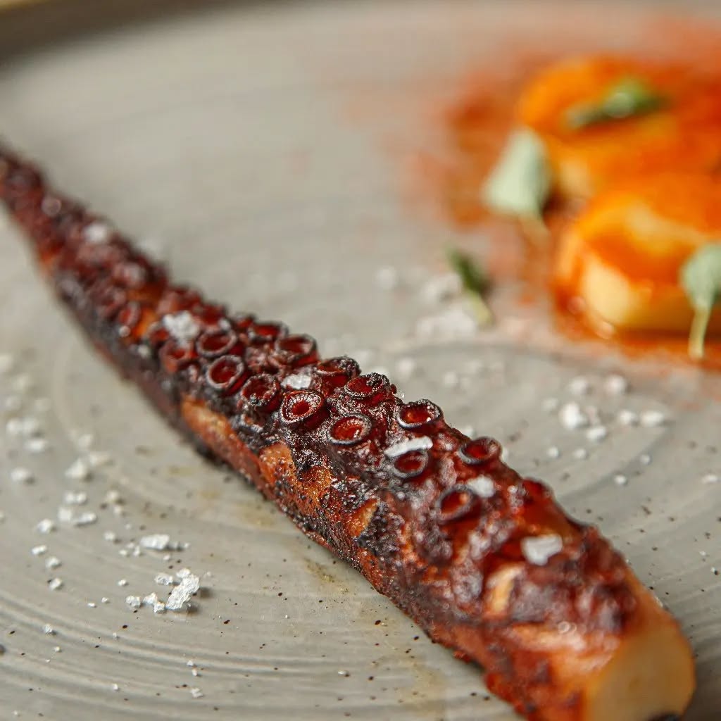 Este restaurante se destaca por ofrecer menús de degustación de varios pasos, una experiencia culinaria progresiva que combina técnicas clásicas y modernas con productos de la región, incluyendo preparaciones que van desde entradas como polenta a la plancha con salsa pomodoro hasta platos de mariscos, carnes al fuego como cordero al Malbec o marucha wagyu, y postres clásicos del Río de la Plata. El estilo del menú refleja la visión de Mallmann de cocina local elevada, utilizando hornos de barro, parrillas y preparaciones al fuego para resaltar sabores memorables.