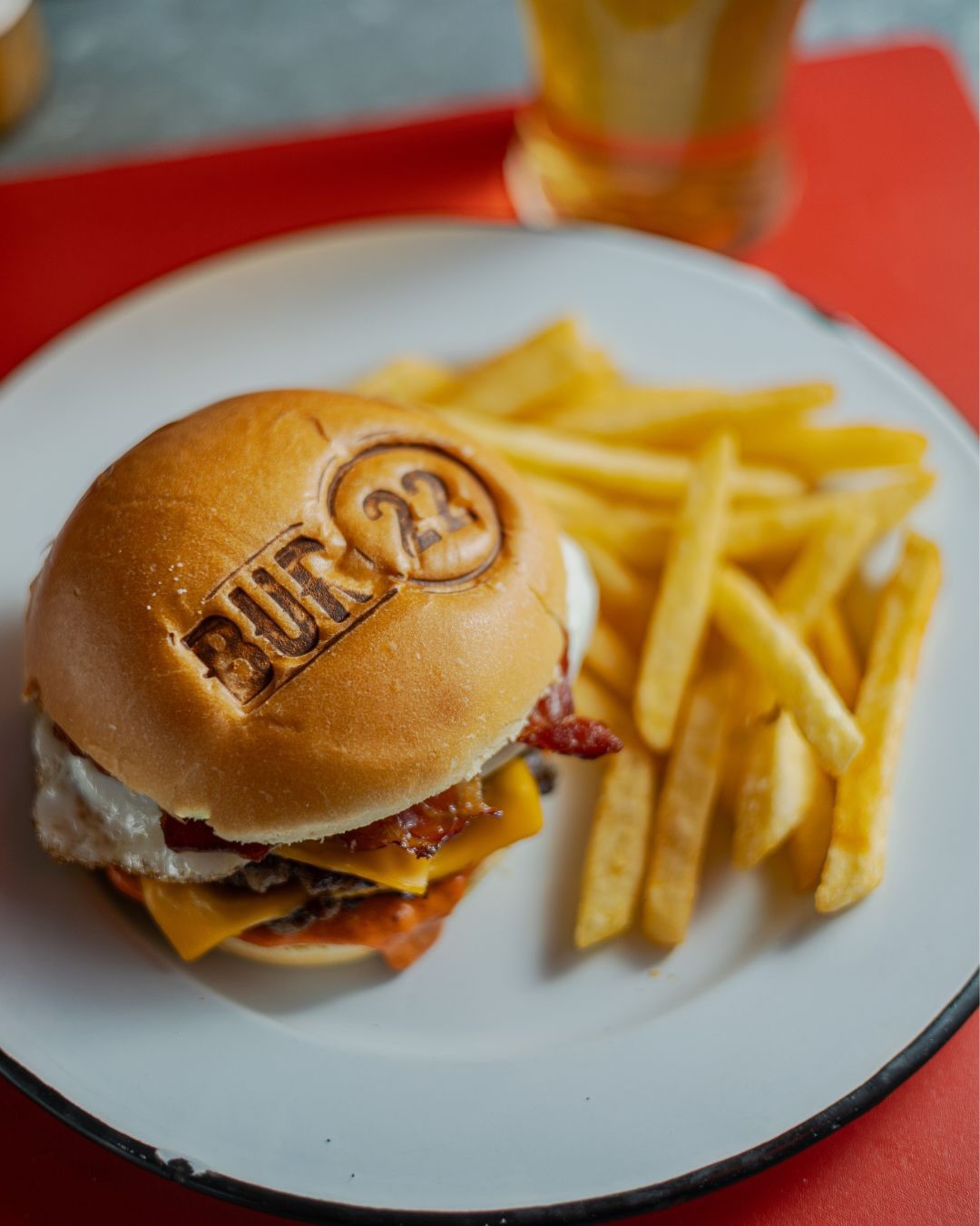 La propuesta culinaria de Bur 22 incluye hamburguesas clásicas y originales, papas fritas con aderezos variados y opciones complementarias, todas preparadas con técnicas de parrilla que resaltan el sabor de la carne artesanal. Además, el local cuenta con una selección de cervezas y bebidas para acompañar las preparaciones, haciendo que cada visita tenga un equilibrio perfecto entre comida y bebidas refrescantes.