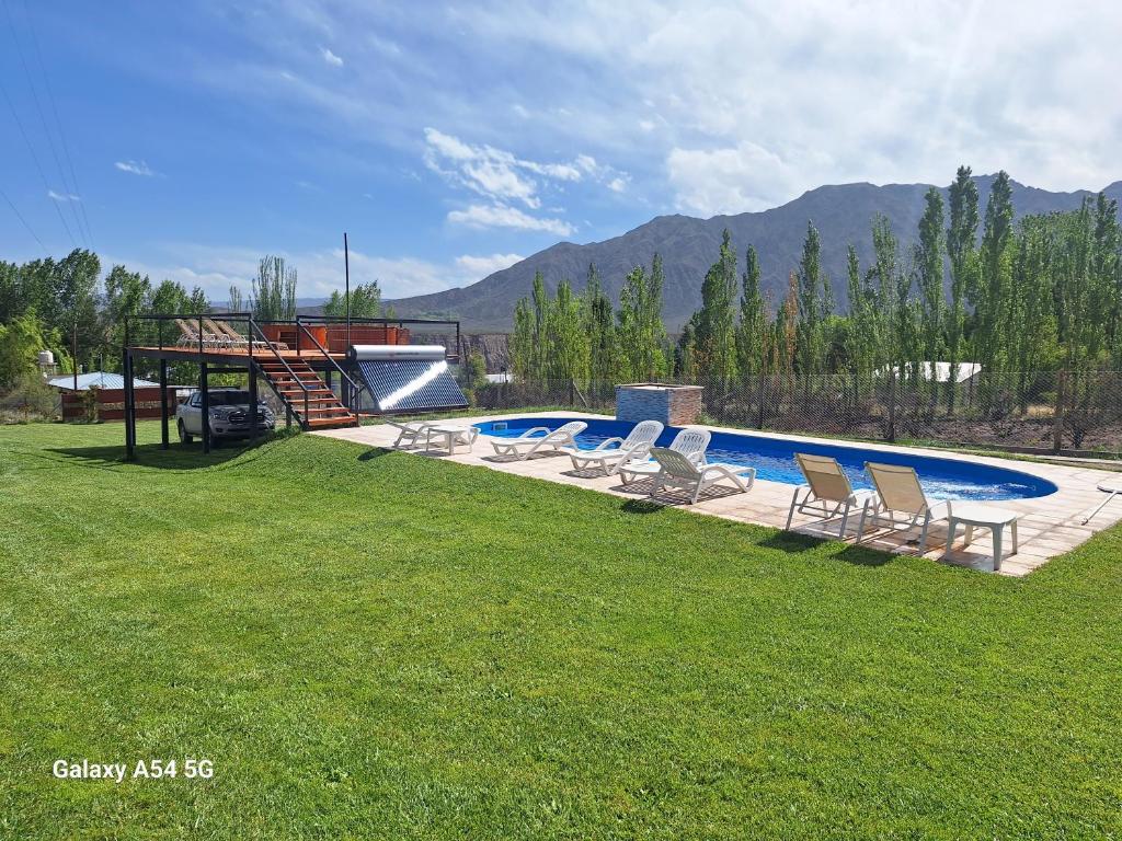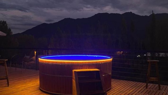 Las cabañas están diseñadas para ofrecer una estadía confortable y funcional, equipadas para 4 a 5 personas con comodidades como TV LED, microondas, aire acondicionado, freezer y cocina eléctrica, lo que permite preparar comidas y relajarse tras un día de exploración en el paisaje montañoso. El predio también cuenta con piscina con solárium, jacuzzi climatizado, churrasquera y amplios espacios parquizados, ideales para aprovechar momentos de descanso al aire libre.