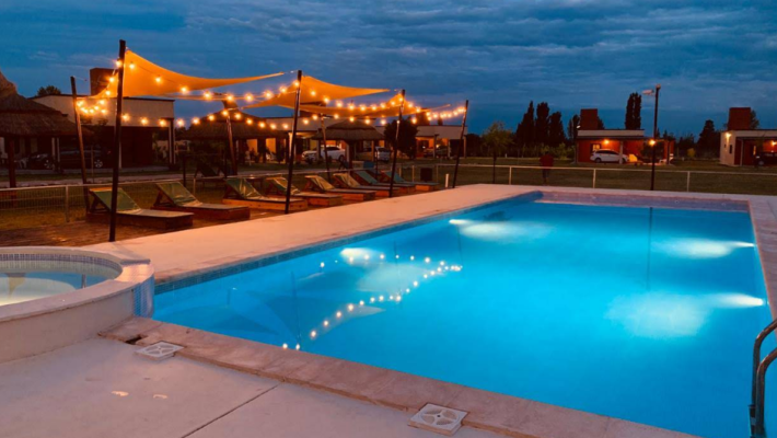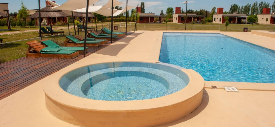 El complejo cuenta con cabañas completamente equipadas con cocina completa, aire acondicionado, calefacción por gas natural, TV Smart, Wi-Fi, ropa de blanco y estacionamiento cubierto privado, pensadas para que tu estadía sea cómoda y práctica. Además, los espacios al aire libre están diseñados para el disfrute de toda la familia, con parrillas individuales, juegos infantiles y una gran piscina de 15×6 m, perfecta para refrescarse en temporada de verano.