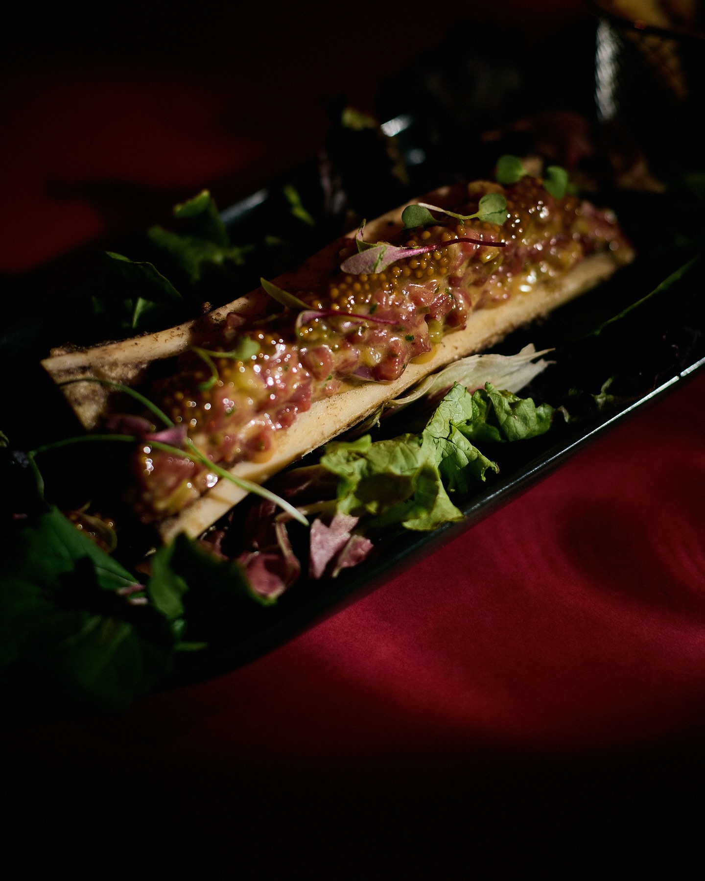 La carta ofrece una experiencia variada que combina entradas como empanadas de carne y tartar de filet, platos principales elaborados con carnes de primera calidad, raviolones de osobuco con salsa de hongos, opciones de mariscos y pescados como spaghetti negro con mariscos o trucha patagónica, y platos modernos con influencias mediterráneas y locales. A estos se suman postres clásicos y vinos de Mendoza seleccionados para complementar cada bocado, creando una experiencia culinaria completa que va desde lo tradicional hasta lo creativo.