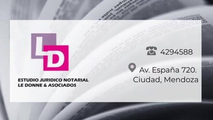 La Escribanía Le Donne y Asociados es un estudio jurídico notarial ubicado en la Ciudad de Mendoza con una larga trayectoria en el ámbito del derecho notarial. Fundada hace más de seis décadas, la escribanía ha sido dirigida por distintas generaciones de profesionales, consolidándose como un espacio dedicado a brindar seguridad jurídica en la formalización de actos y contratos. Su trabajo se enfoca en ofrecer asesoramiento claro y acompañamiento profesional en trámites notariales para particulares y empresas.