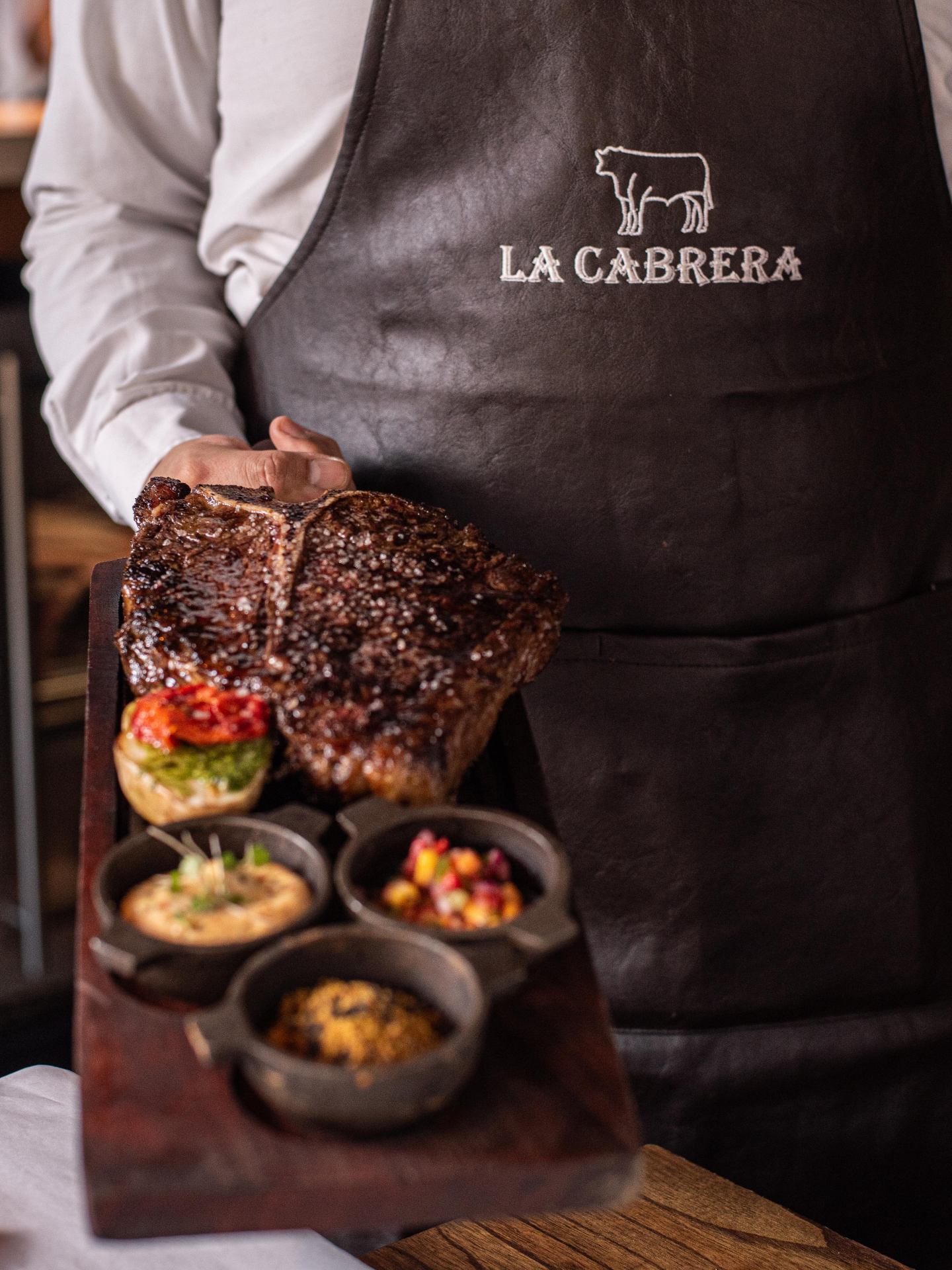 El enfoque culinario de La Cabrera está centrado en carnes asadas a la parrilla y cortes de alta calidad como el ojo de bife de Angus, chorizo criollo de rueda, Wagyu y T-Bone, acompañados por guarniciones tradicionales, empanadas y ensaladas que resaltan la tradición argentina. El espacio combina una atmósfera elegante y distendida con un servicio atento, convirtiéndose en una de las opciones más recomendadas de parrilla y restaurante argentino en Mendoza, especialmente para quienes buscan vivir un auténtico asado acompañado por una selección de vinos mendocinos.